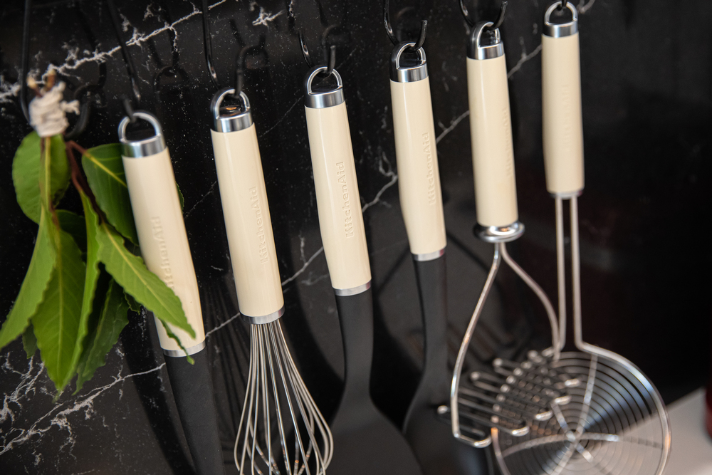 "Картоплем'ялка KitchenAid необхідна для приготування однорідного пюре з картоплі, овочів або фруктів. Насадка виготовлена з товстої нержавіючої сталі, яка є міцною та стійкою до іржі. Ручка добре збалансована та ергономічна, що забезпечує комфорт і плавність роботи при інтенсивному використанні. Глянцева ручка має рельєфний логотип, а також сатинову хромовану підставку та петлю для підвішування. Її можна мити в посудомийній машині для легкого очищення.