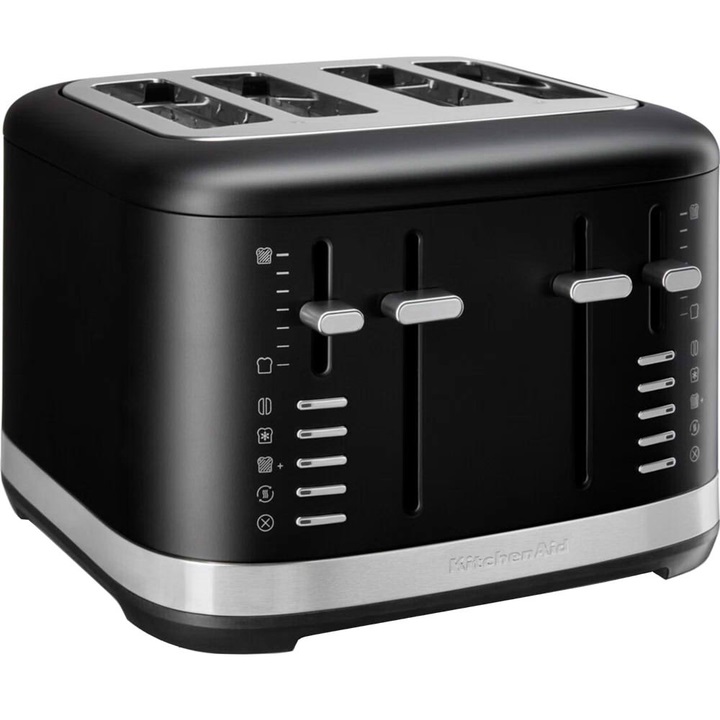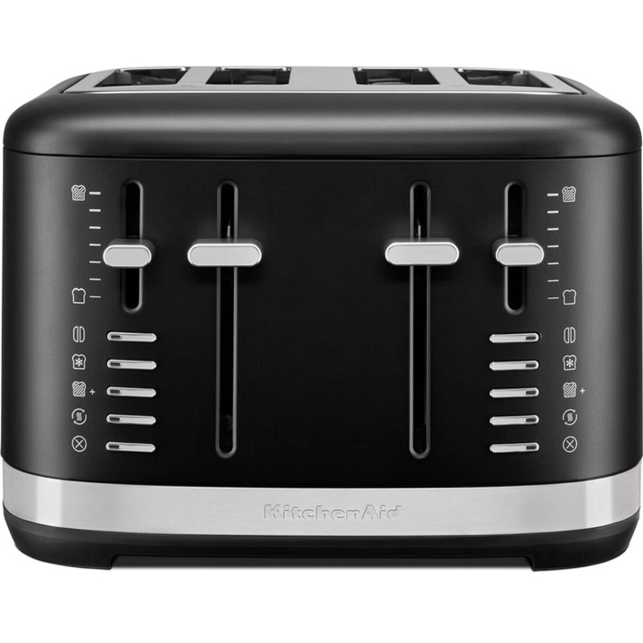 Тостер KitchenAid 5KMT4109EBM на 4 стоти надає вам широкий вибір відтінків одночасного підсмажування тостів, від світлого до темного. Ви можете підсмажувати хліб, кекси, рогалики тощо, саме так, як вам подобається. Дві пари незалежних слотів мають окреме керування для гнучкості в приготуванні улюблених страв на сніданок. На передній частині корпусу розташовано регулятор на 7 рівнів ступеня обсмажування тостів на вибір, від м’якеньких та злегка підсмажених до темних і хрустких. Інтуїтивно зрозумілий у своєму керуванні, тостер дозволяє робити більше завдяки 4 додатковим функціям: режим розморожування, режим "бейгл", розігрів та збереження тепла. Також тостер KitchenAid 5KMT4109EBM має функцію «скасувати», що може вам допомогти, у разі не правильно обраного налаштування. Тостер має міцну металеву конструкцію, яка стильно виглядає на кухні. Ручний важіль високого підйому допомагає дістати навіть маленькі шматочки тостів з вашого тостера. Для того щоб ваш тостер KitchenAid 5KMT4109EBM виглядав, якомога довше, як новий, радимо періодично протирати корпус м’якою вологою тканиною та очищати знімний лоток для крихт.