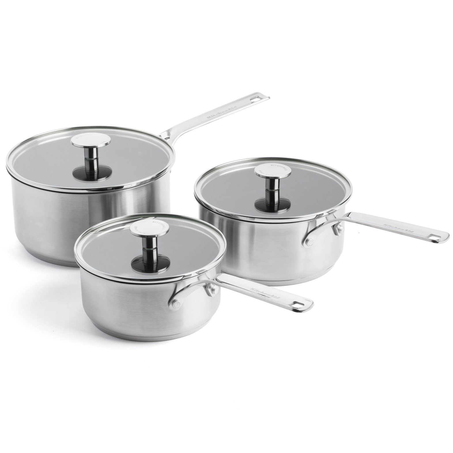 Набір ковшів з кришками KitchenAid SSS, 16/18/20 см, 1,5/2,1/3,1 л з керамічним а/п покриттям