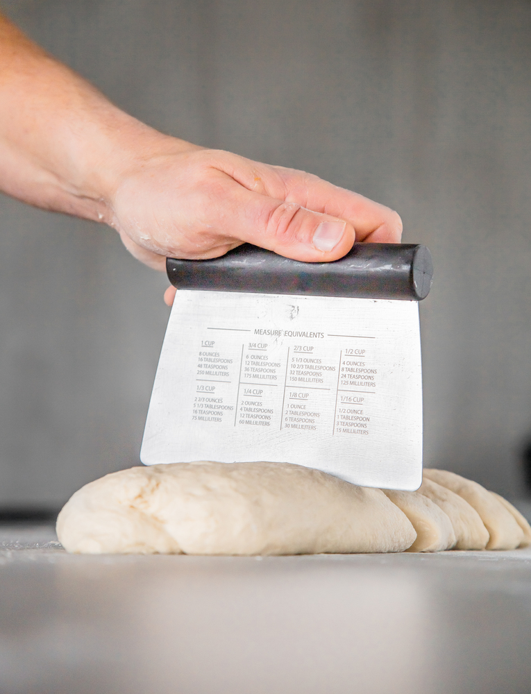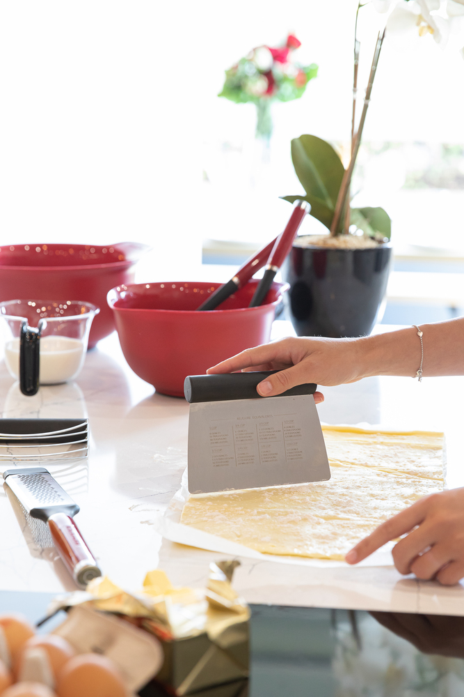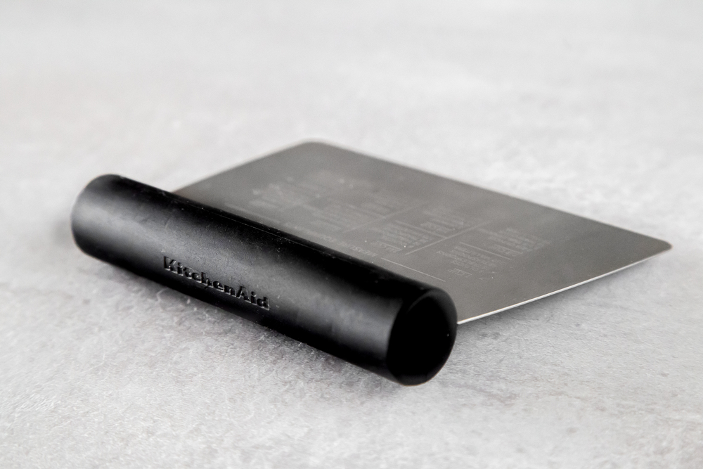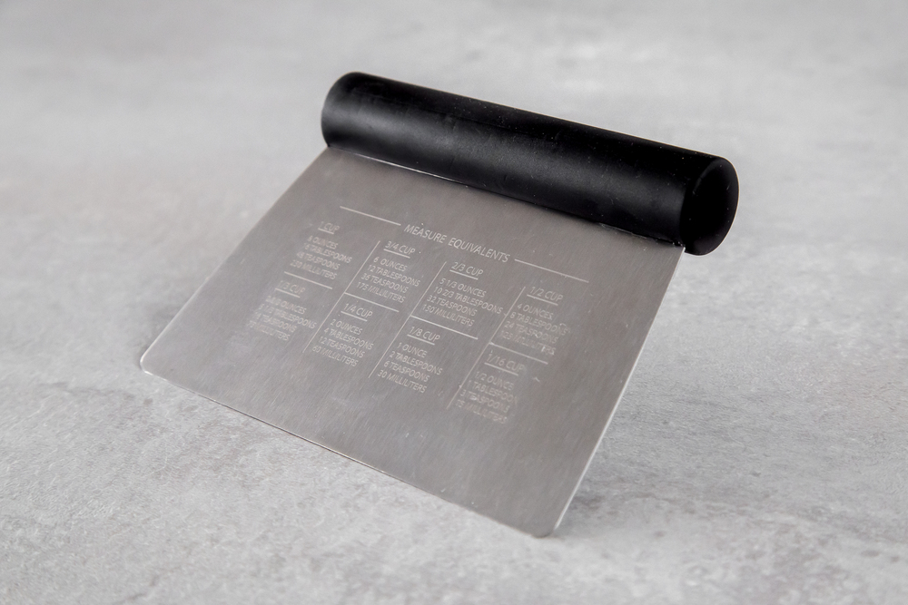 Цей універсальний скребок від KitchenAid корисний для нарізання та вимірювання тіста, подрібнення часнику, нарізання овочів та очищення поверхонь. На одній стороні нанесені мірні позначки (до шести дюймів) для точного нарізання, а на іншій стороні надруковані зручні коефіцієнти перерахунку об'єму. Зручна нековзна ручка забезпечує плавну роботу при інтенсивному використанні. Можна мити в посудомийній машині для легкого очищення.