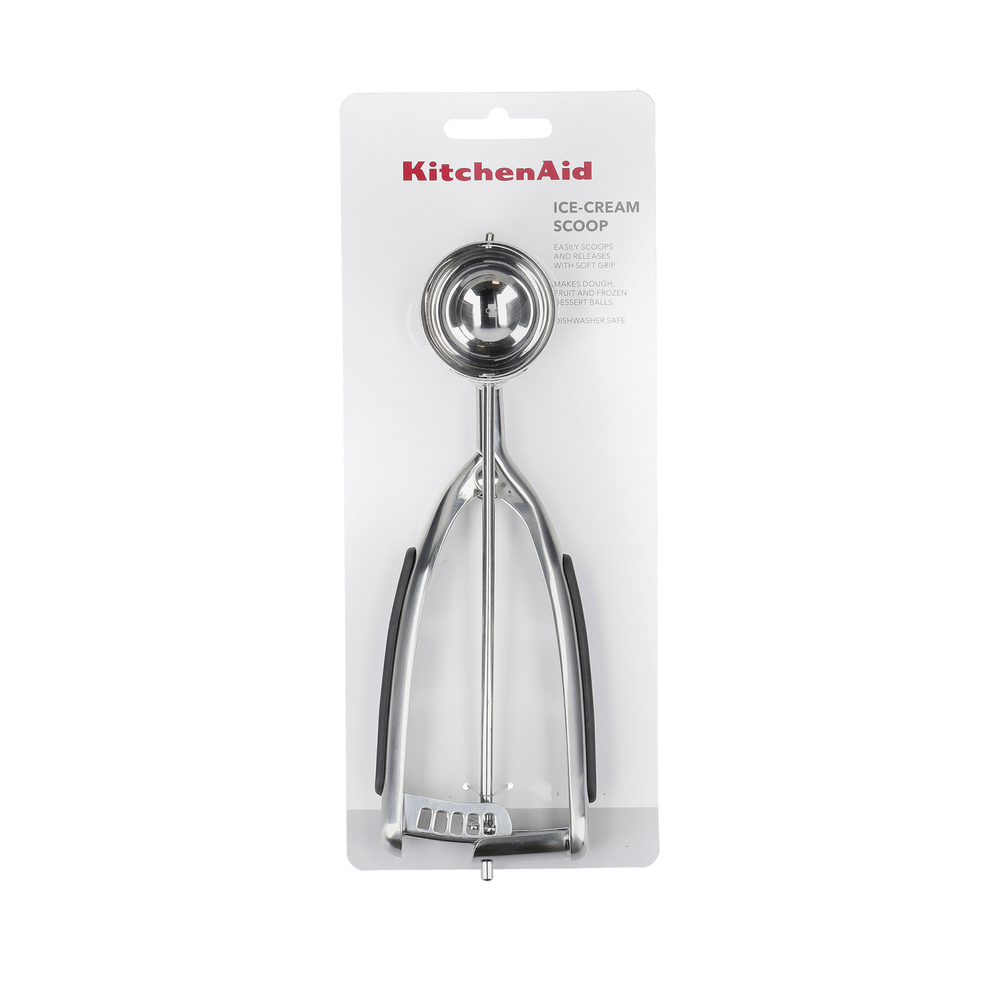 Ложка для тіста/морозива від KitchenAid відміряє та зачерпує рівномірні кульки з тіста для печива та морозива. Вона має м'яку ручку та пружинний механізм для легкого стискання та відпускання. Високоякісні матеріали забезпечують максимальну продуктивність. Можна мити в посудомийній машині для легкого очищення.
