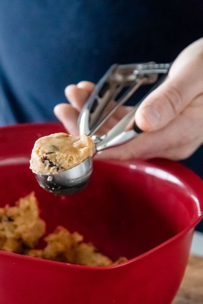Ложкою сформуйте рівномірні кульки з тіста для печива або морозива
