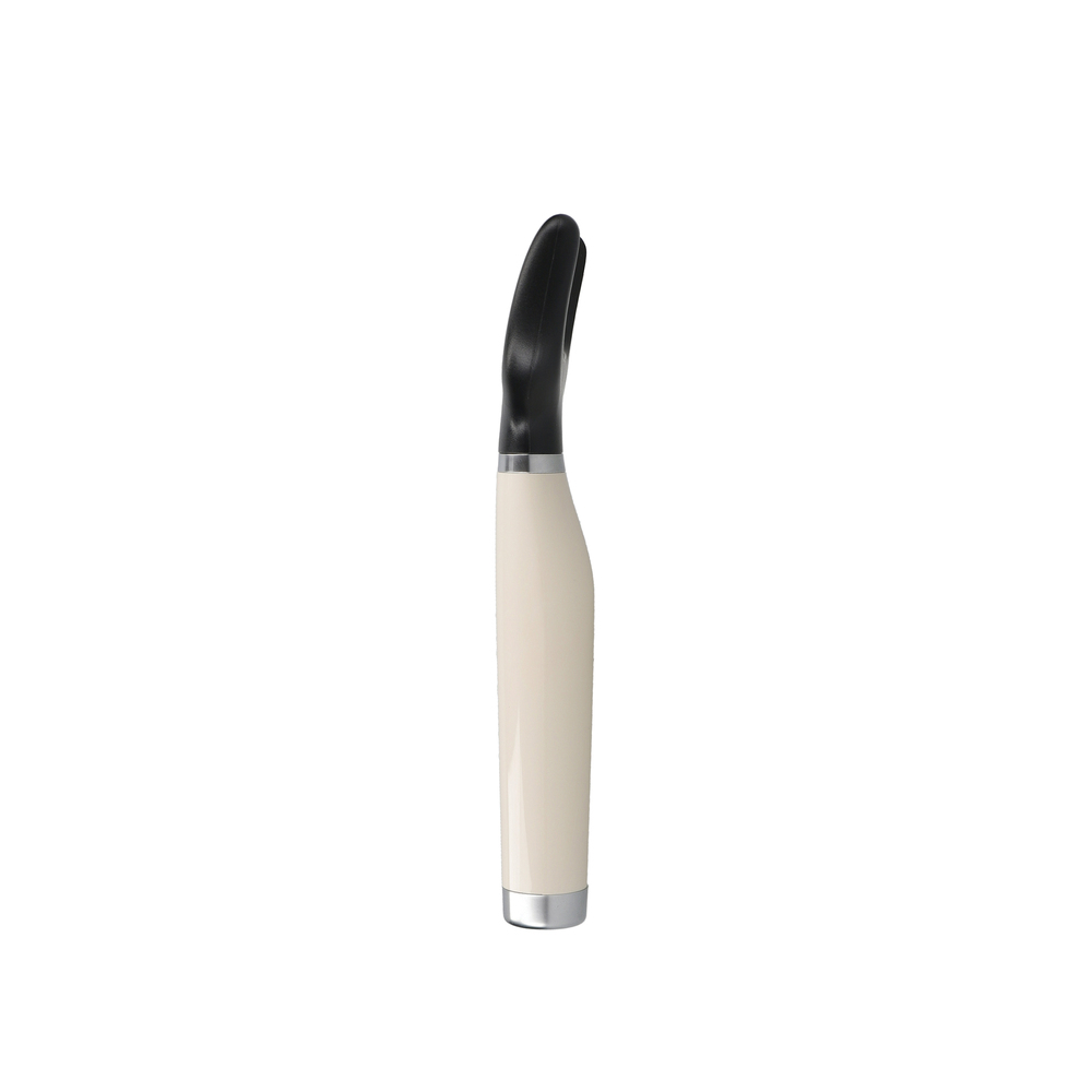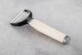 Овочечистка KitchenAid Y Peeler спрощує чищення фруктів і овочів. Вона має пряме лезо з одним краєм, виготовлене з міцної, стійкої до іржі нержавіючої сталі, а також ергономічну ручку для надійного та зручного захоплення. На глянцевій ручці нанесено рельєфний логотип, а також сатинована хромована накладка. Y-образний ніж можна мити в посудомийній машині для легкого очищення, а для зберігання він постачається в захисному чохлі.
